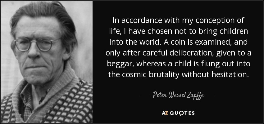Oggigiorno il costo della vita è sempre più spropositato. Uno stipendio non basta neanche per noi stessi, figuriamoci per assicurare una vita degna ai nostri protetti. Se ci pensi, gli trasmettiamo anche i nostri difetti, condannandoli a scontare le nostre tare genetiche, sottoponendoli alle inevitabili conseguenze mediche. Inoltre, non voglio che assistano al mio declino cognitivo e fisico, e che siano costretti a vedermi in un letto di ospedale morente, piangendo tristemente, nei miei ultimi giorni di vita. Ma, soprattutto, perché condannarli, lasciandogli un mondo allo sbando che sta sull’orlo del barataro. Non hanno un futuro assicurato come crediamo, le cose nel corso dei prossimi anni cambieranno.
